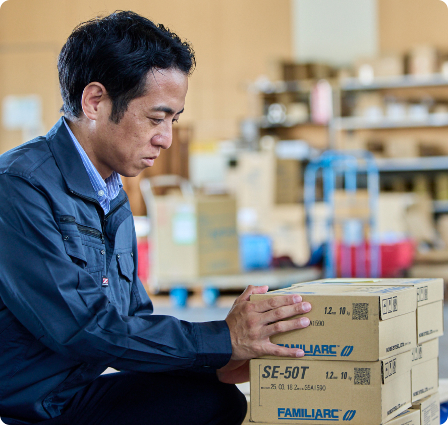 造船、車両、構造物、建設機械、住宅設備など、さまざまな産業に欠かせない溶接技術。その信頼を支えているのは、神戸製鋼グループの確かな基盤と、社員一人ひとりの専門知識、そしてチームワークです。