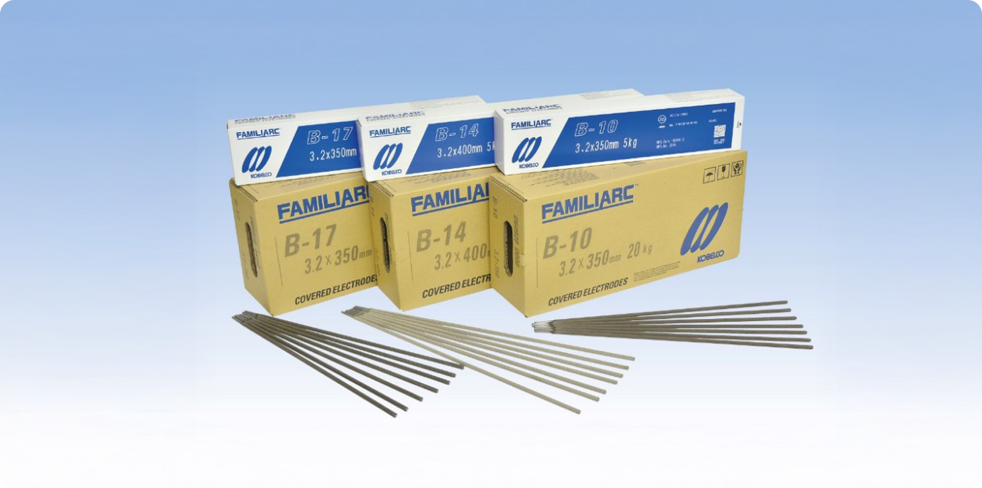 とくにB-10、B-14、B-17などに代表されるイルミナイト系溶接棒は、あらゆる構造物の溶接に広く使用されているロングセラー製品です。
